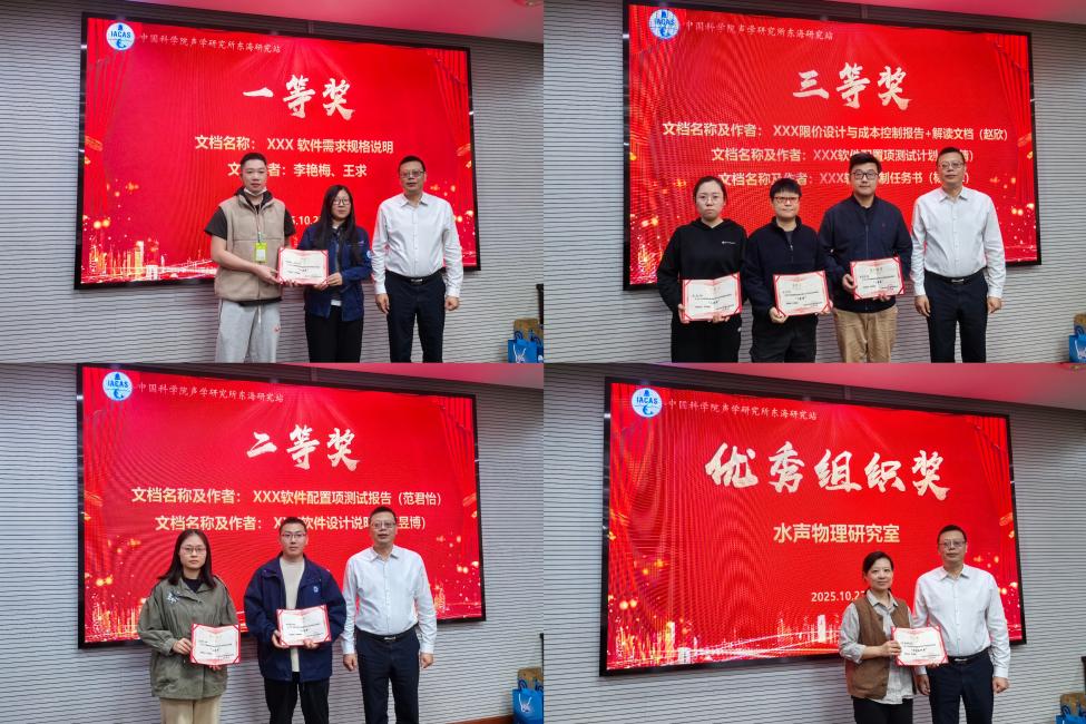 在技术文档评选过程中,各研究室积极响应,技术人员提交了多篇项目技术文档。会上,许伟杰为一、二、三等奖优秀文档作者及优秀组织团队颁发荣誉证书,旨在鼓励技术人员沉淀宝贵经验,分享良好实践,为提升技术文档整体编制水平作出积极贡献。