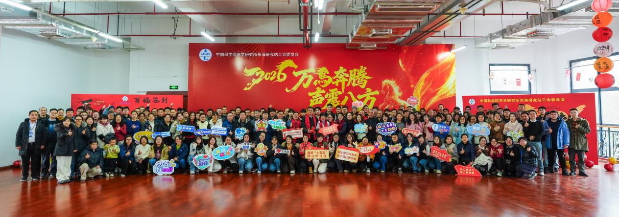 金蛇贺岁去,骏马踏春来。1月20日,腊月初的一场瑞雪悄然降临上海,东海研究站工会组织举办的2026年新春游园活动也恰逢其时热闹启幕。此次活动以“万马奔腾 声震八方”为主题,寓意在新的一年里,全体东海站人将以“万马奔腾”的气势勇攀声学领域高峰,以“声震八方”的成果助力科技强国建设。全站200余名职工及研究生齐聚一堂,共迎新春。活动得到了相关企业、学校和非遗文化传人的大力支持。活动由站工会主席刘晓隽主持。