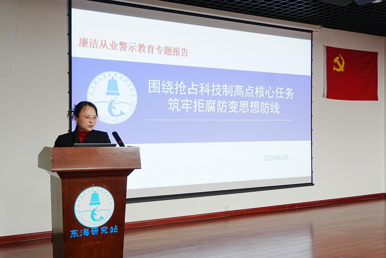 纪委书记黄楚丹作廉洁从业警示教育专题报告,以真实案例敲响廉洁警钟,强化干部职工廉洁自律意识,为研究站高质量发展提供坚强纪律保障。