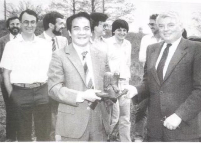 1984年张叔英研究员结束加拿大Huntec公司工作,回国前该公司董事长送他纪念品并开欢送宴会。