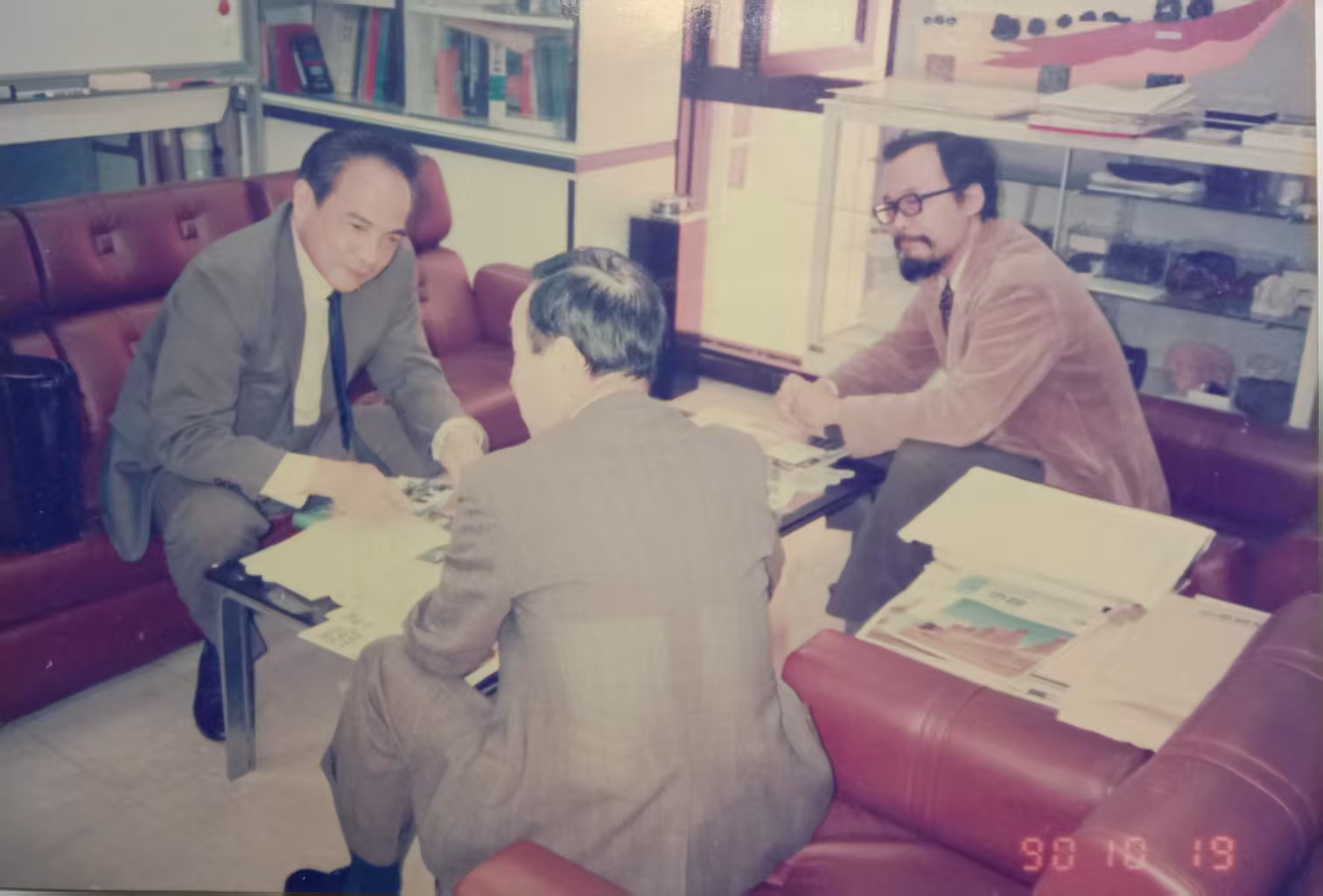 1990年张叔英研究员(左1)回访日本地质研究所时,与日本科学家讨论地质图像问题。