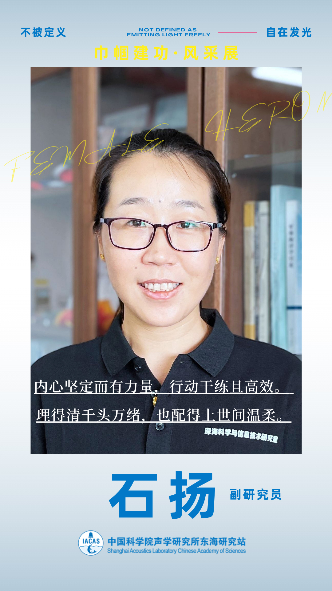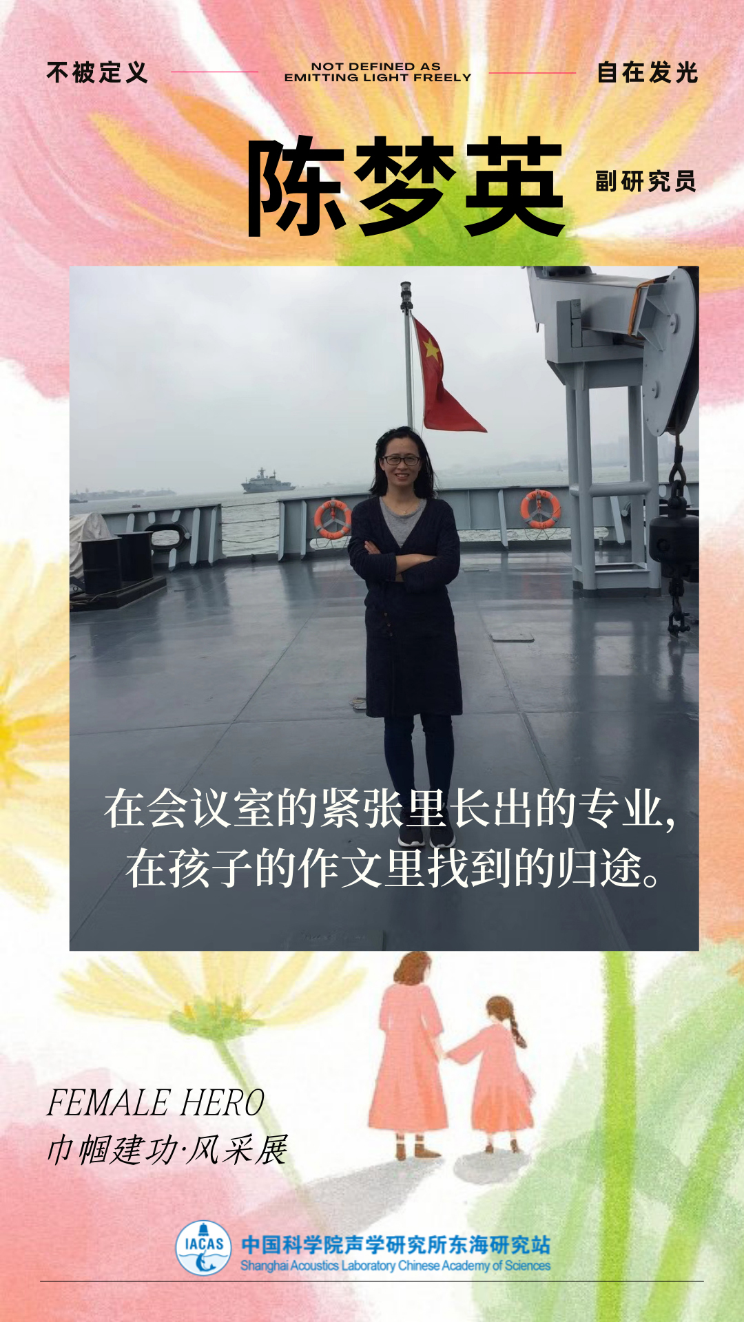 编者按:春风如你,熠熠芳华。在“三八”国际妇女节来临之际,为充分展现东海站女性科技工作者爱岗敬业、锐意进取、智慧坚韧、温柔有力的时代风采,致敬每一位心怀热爱、勇担使命、在科研岗位上默默坚守、闪闪发光的“她”,东海站妇委特别推出“巾帼建功·风采展”系列活动。本次活动共分四期,每期展示两位优秀女性科技工作者,记录她们的初心与担当,传递巾帼力量,致敬最美的她。